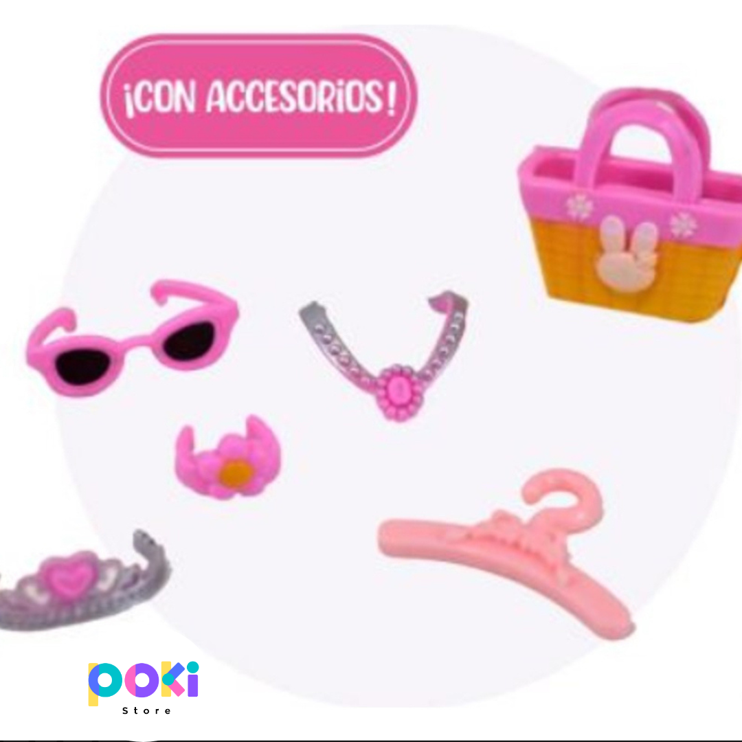 - Varios accesorios para cambiar y combinar atuendos, creando looks únicos para cada ocasión.